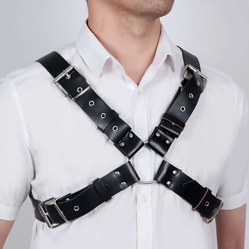 • Black harnessis one size,which details as picture shown, u can adjust the length of the belt according to your body shape, suitable for most men.