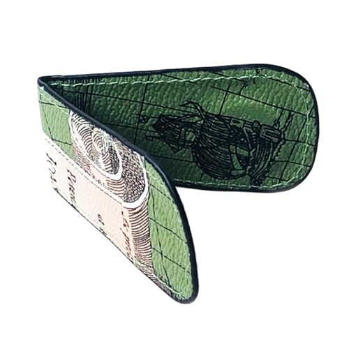 HOT ! Faux Leather Unisex Map Pattern Mini Faux Leather Magnetic Cash Money Clip Holder Storage Bag, Brown