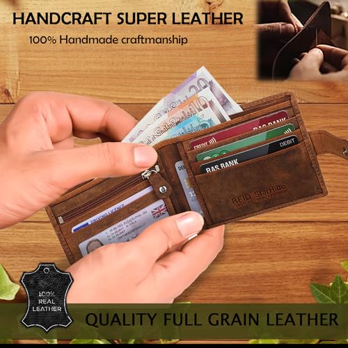 Mens RFID Contactless Card Blocking Id Protection Wallet Real Disressed Hunter Leather Classic Bifold Wallet with Gift Box 1100 (Brown) 7