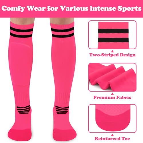 • PERFECT FOR VARIOUS SPORTS: Mainly made with premium terry cushion, the kids baseball socks have superior elasticity and breathability to perfectly fit types of sports. The girls soccer socks are not only suitable for various ball games such as soccer, baseball, hockey and rugby, but can be used for cycling, hiking and so on. In addition, the soccer socks youth boys feature classic double-stripe and vibrant colors, making it easy to match sportswear, jerseys, school uniforms and casual wear.