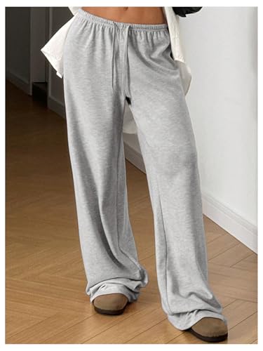 HOT ! Girl's Wide Leg Baggy Sweatpants Sports Elastic Waist Long Track Pants Trousers with Pockets