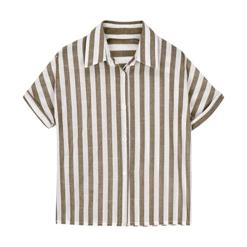 Girls Striped Button Down Shirts Short Sleeve Cotton Linen Shirts Summer Beach Casual Blouse Tops 6