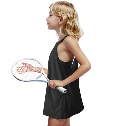 HOT ! Girls Tennis Dress Workout Mini Dress with Shorts Sleeveless Spaghetti Straps Golf Athletic Dresses for Kids 5-15Y