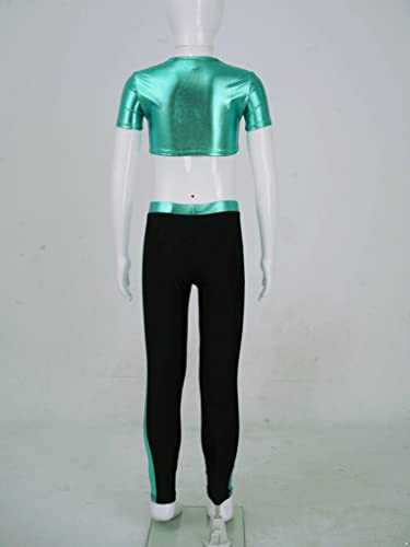 Kids Girls Metallic Crop Tops with Leggings Pants Set 2 Piece Dance Training Outfits Athletic Sport Tracksuit 4