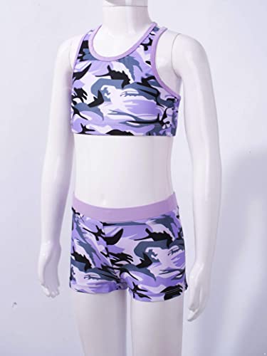 Kids Girls 2 Piece Sports Gymnastics Dance Outfits Crop Tank Top with Booty Shorts Active Workout Sets Lavender 12 Years 2