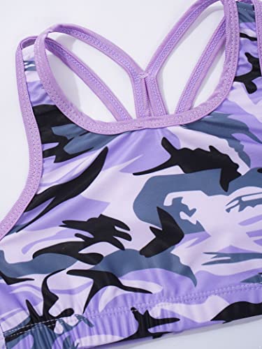 Kids Girls 2 Piece Sports Gymnastics Dance Outfits Crop Tank Top with Booty Shorts Active Workout Sets Lavender 12 Years 6