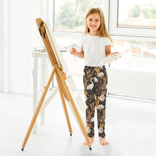 KLL Floral Motives and Cranes Cartoon Toddler Baby Girl Basic Leggings Stretch High Waisted Lounge Pants Running 4