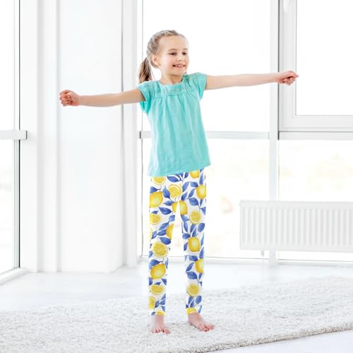 Wusikd Lemon Blue Leaves Girls' Leggings Toddler Doodles Yellow Kids Yoga Pants Dance Active Tights 4T 7