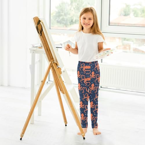 Wusikd Orange Octopus Girls' Leggings Toddler Doodles Kids Yoga Pants Dance Active Tights 4T 6