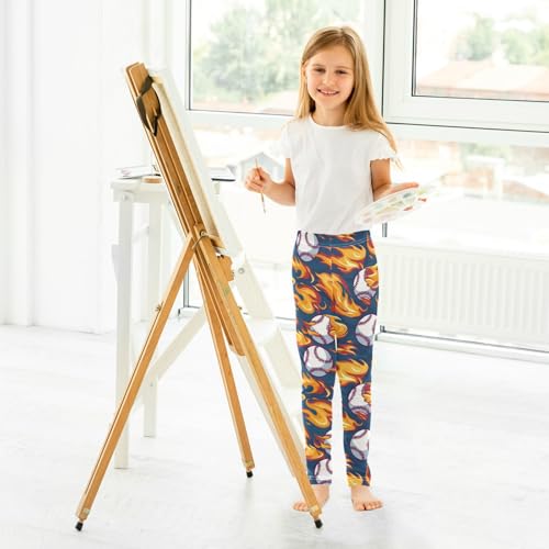 Wusikd Baseball Flames Girls' Leggings Toddler Doodles Kids Yoga Pants Dance Active Tights 4T 7