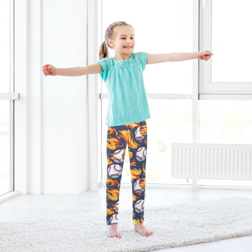 Wusikd Baseball Flames Girls' Leggings Toddler Doodles Kids Yoga Pants Dance Active Tights 4T 6