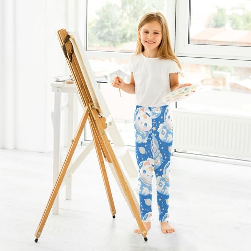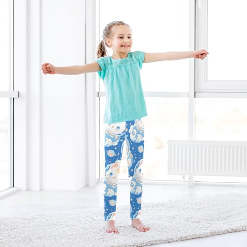 KLL Cute White Cat Astronaut Floating in Space Little Girls Basic Leggings Fashion Full Length Sweatpants Running 5