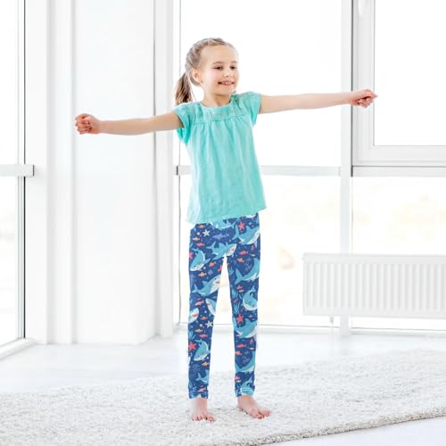 Cartoon Sharks Starfish Girls' Leggings Toddler Doodles Cute Kids Yoga Pants Dance Active Tights 4T 6