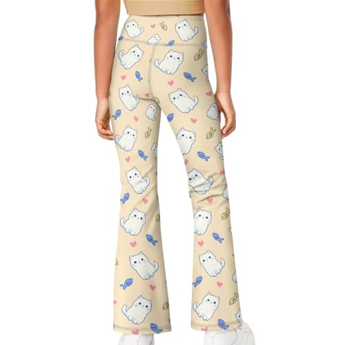 Cute Kitten Leggings for Girls Stretch High Waist Tummy Control Workout Dance Bootcut Yoga Pants 6