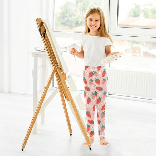 Strawberry and Flowers Girls Leggings,Workout Leggings for Girls Toddler Athletic Leggings Size for 3-10T 3