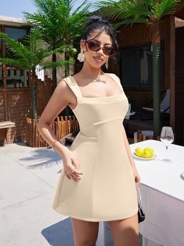 DAAWENXI Women's Casual Square Neck Sleeveless Tank Top Flare Mini Dress A Line Party Club Dresses 1
