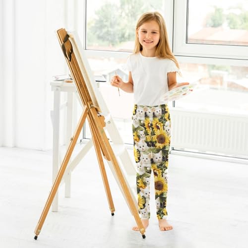 White Cat Sunflowers 1 Girls Leggings Athletic Pants Tights Stretch Bottom 5