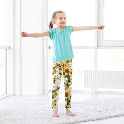 White Cat Sunflowers 1 Girls Leggings Athletic Pants Tights Stretch Bottom 6