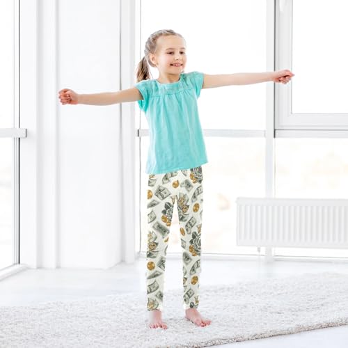 ZZKKO Girls Leggings Flying Falling Dollar Banknotes Toddler Girls Clothes Leggings for Girls Toddler Girls Leggings 3-4T 5