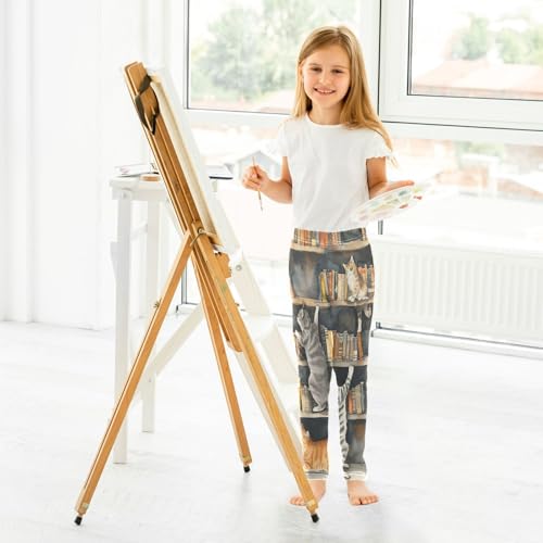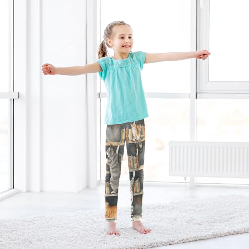 Toddler Girls Leggings Printed Yoga Pants Leggings Cats Playing Bookshelf for Kids 4