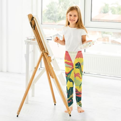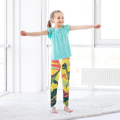 Bolaz Toddler Girls Leggings Printed Yoga Pants Leggings Running Retro Dinosaur for Kids 4