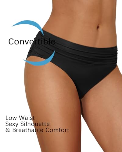 Holipick Women High Waisted Bikini Bottom Full Coverage Bathing Suits Bottoms Mid Waist Tummy Control Swim Bottom 5