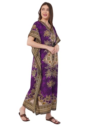 Divine threads -- Women's Kaftan Floral Print/Beach Cover Up/Plus Size V-Neck Loose Kimono Maxi Dress 4