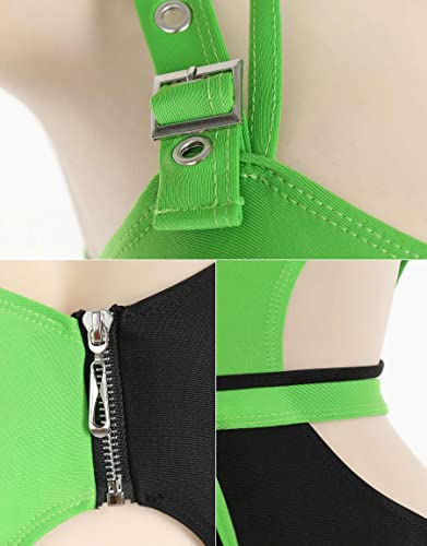 MEOWCOS Women's One Piece Swimwear Gothic Swimsuit Green and Black Spliced Cutout Bathing Suit 4