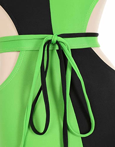 MEOWCOS Women's One Piece Swimwear Gothic Swimsuit Green and Black Spliced Cutout Bathing Suit 6