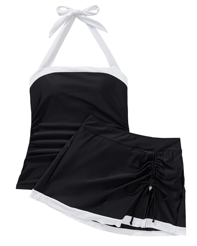 HOT ! SUUKSESS Women Tummy Control Tankini Swimsuits with Skirt Backless Bathing Suit