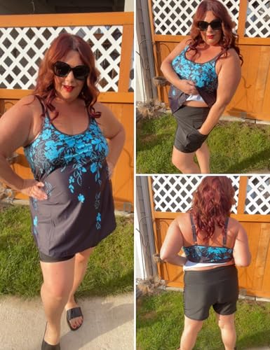 COOTRY Womens 2025 Plus Size Tankini Swimsuits Two Piece Bathing Suits Flowy Swimwear Swim Tank Top with Boyshorts 6