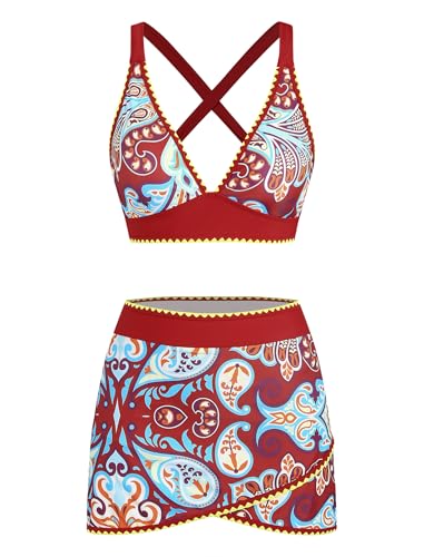• Bikini with Skirt: High waisted swim skirt includes a built-in brief, Irregular hem,color blcok bathing suit skirt provides full coverage and tummy control for added confidence
