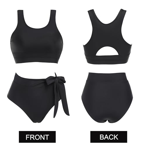 • FEATURES - The high-waisted swimsuits for women are designed with removable padding, scoop neck, cut-out racerback top, high-cut bikini bottom, and tie side knot