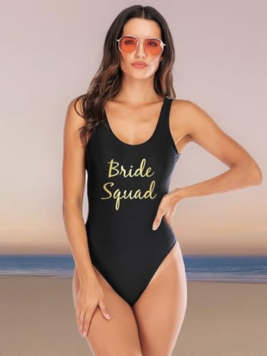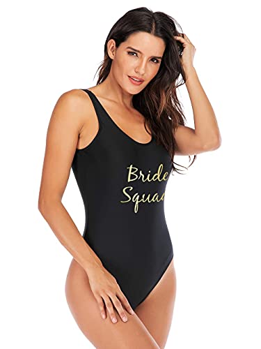 More information about Elightvap Bride to Be Squad Women One Piece Swimsuits Letter Print Swimwear High Cut Monokini Bridesmaid Team Bathing Suits