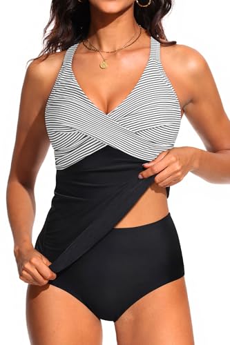 More information about Tempt Me Women Ruched Tankini Swimsuit - Tummy Control Two Piece Bathing Suits Twist V Neck Swimwear with Bottom 2025