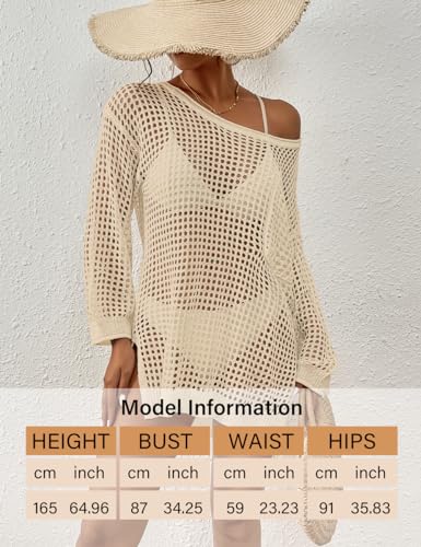 • One size swim suit cover ups fit US size S, M, L, Shoulder: 20.9" Length: 30.7" Sleeve Length: 16.9"