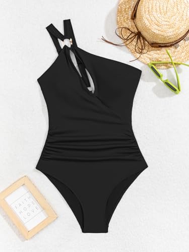 One Shoulder One Piece Swimsuit for Women Cutout Tummy Control Bathing Suit Swimwear 1