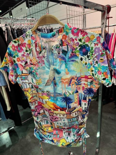 More information about Johnny Was Cannes Drawstring Surf Shirt Short Swim Rush Guard White Blue Top New