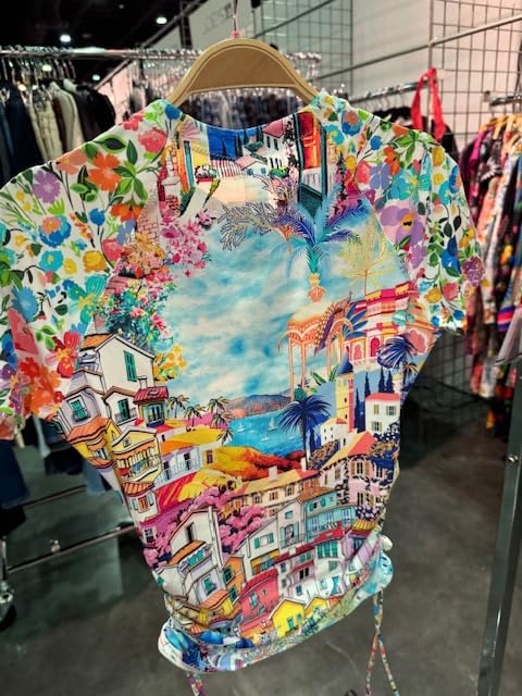 Johnny Was Cannes Drawstring Surf Shirt Short Swim Rush Guard White Blue Top New 6