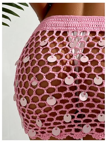 SHENHE Women's Crochet Bikini Cover Up Sequin Hollow Out Beach Mini Skirt Swimsuit Cover Ups 5
