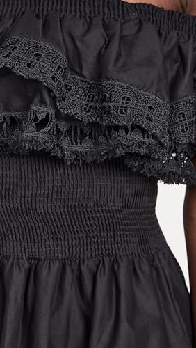 • Elasticized off-shoulder neckline, Smocked elastic bodice, Layered skirt, Lace trim