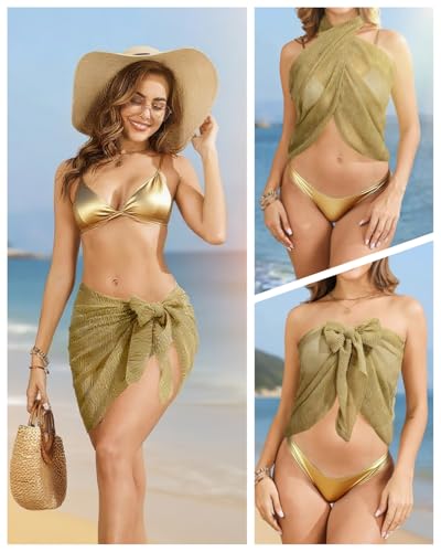Holipick Shiny Sarong Coverups for Women Bathing Suit Wrap Skirt Swimsuit Beach Bikini Cover Up 4