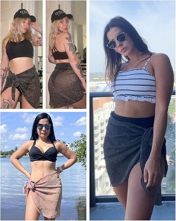 Holipick Shiny Sarong Coverups for Women Bathing Suit Wrap Skirt Swimsuit Beach Bikini Cover Up 6