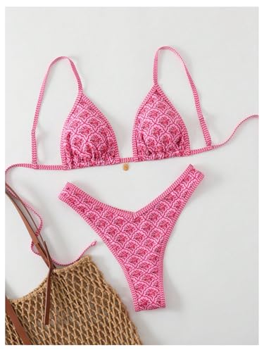MakeMeChic Women's Bikini Sets Floral Print Spaghetti Strap High Cut Swimsuit Beachwear 5