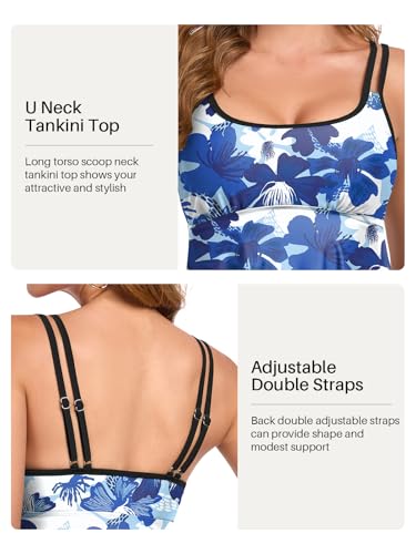 • Top Feature: Tankini top features removable padded bras and back adjustable straps, provide shape and modest support. Loose flowy hem can cover everythings you want, hide your tummy and shows your charming.