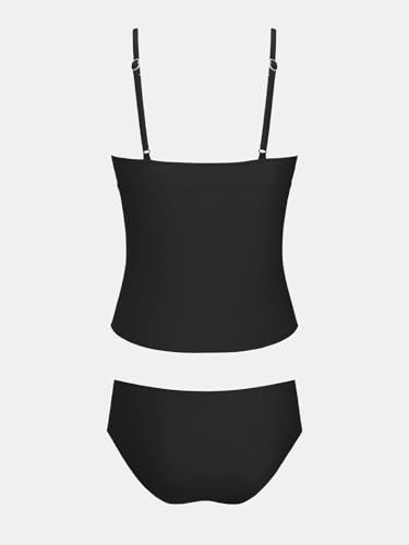 CUPSHE Women's Tankini Sets Two Piece Swimsuit V Neck Ruched Shell Stitched Bathing Suit Spaghetti Adjustable Straps 6