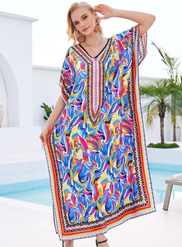 Plus Size Kaftan Dresses for Women Beach Cover Ups Swimwear with V-Neck Lightweight Caftans for Vacation Dress 6