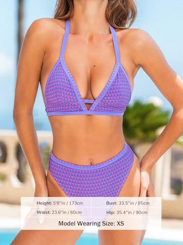 • Design: This Bikini Set Features a Flattering V Neck Halter with a Secure Back Hook Closure. The Top Has a Triangle Design that Enhances Your Curves. The High Waisted Bottom Offers a Comfortable Fit, While the High Cut Cheeky Style Adds a Playful Touch, Making It Perfect for Beach Outings.