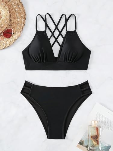 HOT ! Cheeky Back Cross Bikini Sets for Women with Sexy High Waisted High Cut Side Straps Bottom