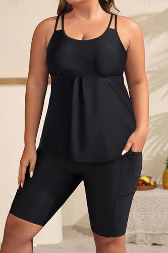 Plus Size Tankini Swimsuits - Athletic Two Piece Bathing Suits with Short for Women Swimwear with Pockets 1